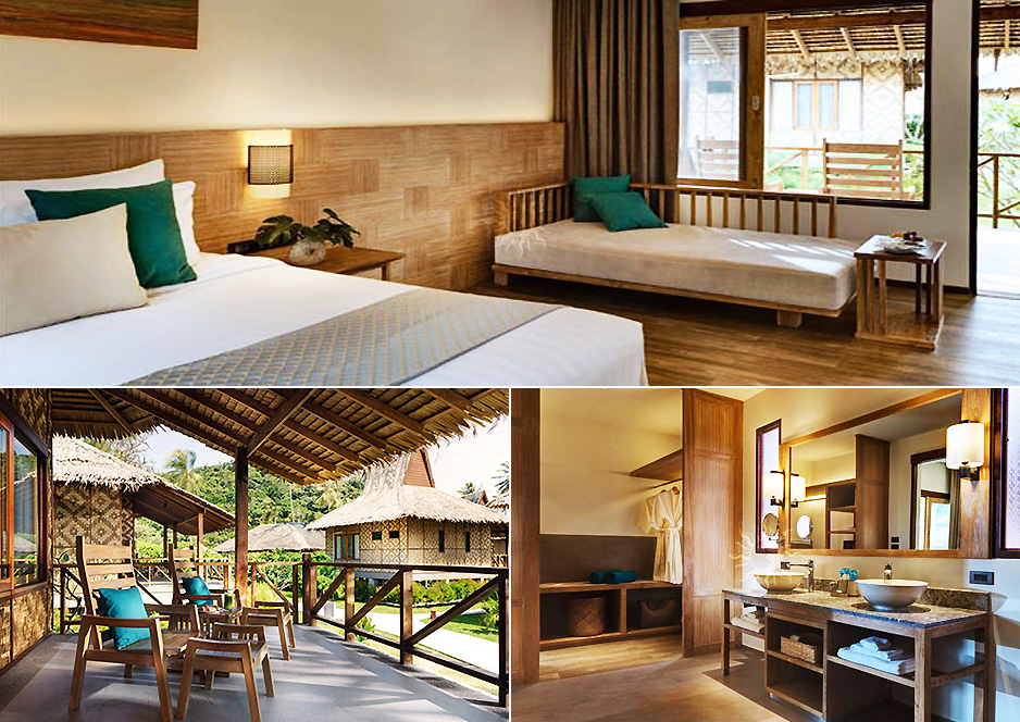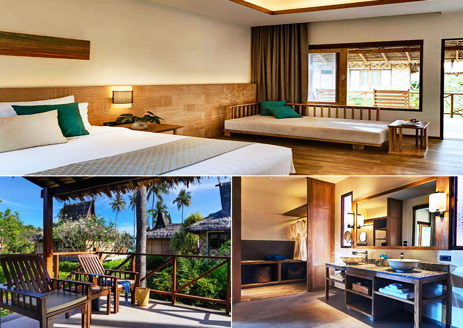 각 슈페리어 방갈로는 초가 지붕이 있는 천연 목재 소재로 제작 되었습니다.