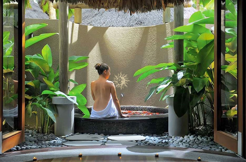 풍성한 열대 정원에 둘러싸여 있습니다. 총 11채의 싱글 트리트먼트 룸, 1채의 더블 룸, 2채의 페이셜 룸, 그리고 중앙에