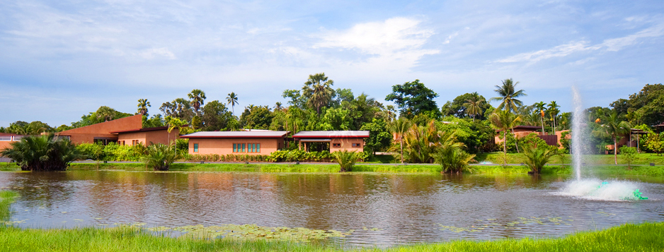 야자수 나무들과 호텔 앞쪽으로 흐르는 강, 그 건너 바다까지 모든 자연이 어우러진 환경에서